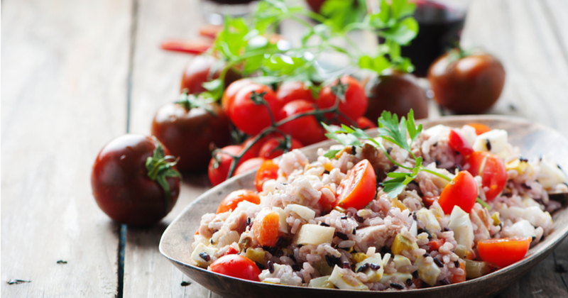 3. Déposez votre riz dans un grand saladier. Ajoutez les œufs durs, les tomates coupées, le poivron, l'oignon et le persil grossièrement.