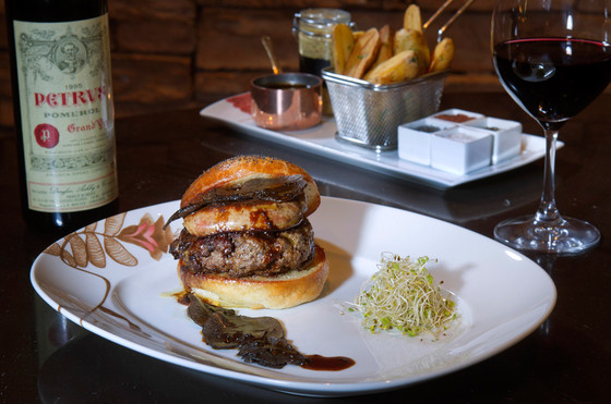 4. 5 000 $ pour un hamburger chez Fleur à Las Vegas : Hubert Keller, star de Top Chef Masters, a signé cette création pour son restaurant Fleur de Lys, au sein du casino Mandalay Bay de Las Vegas en 2011, selon Delish.com. Le bœuf Wagyu et la tranche de foie gras sont recouverts d'une sauce aux truffes et de copeaux de truffes noires, et le tout est servi sur un pain brioché aux truffes. Le hamburger est aussi accompagné d'une bouteille de Bordeaux Château Petrus de 1995, qui coûte dans les 2 500 $ la bouteille. Le vin est servi dans des verres Ichendorf, que vous pouvez emporter. Ceux qui commandent ce repas onéreux repartent également avec un certificat d'authenticité pour prouver qu'ils ont bien déboursé tout cet argent.