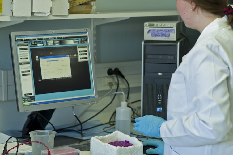 Analyse d’image des fragments d’ADN obtenus sous lumière ultra-violette après électrophorèse.