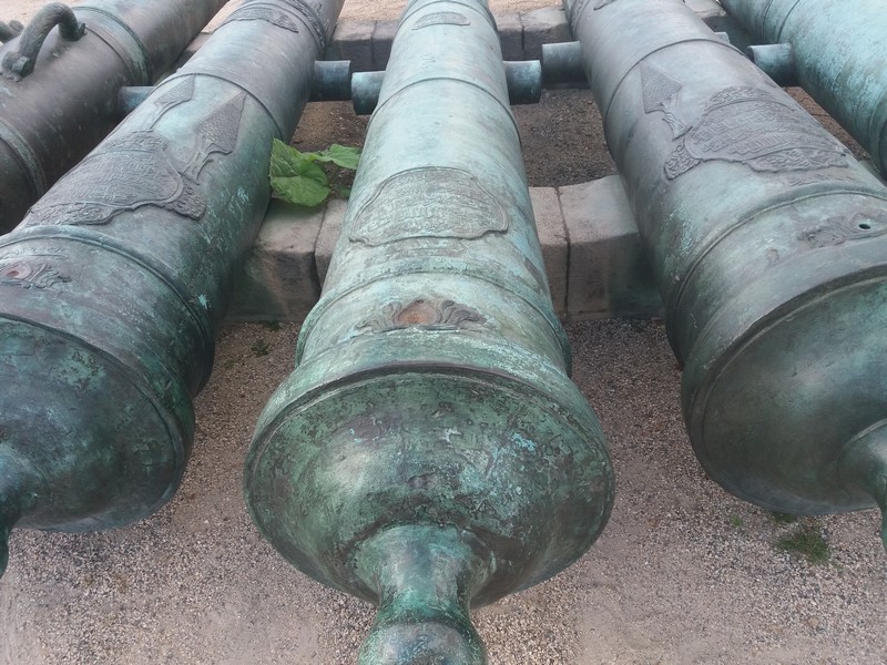 Ces canons ont de la gueule,avec cette couleur verdâtre,dont on ne sait si c'est a cause d'un alliage spécial atteint par l'âge et le temps ou pour faire une référence a un certain étendard ,