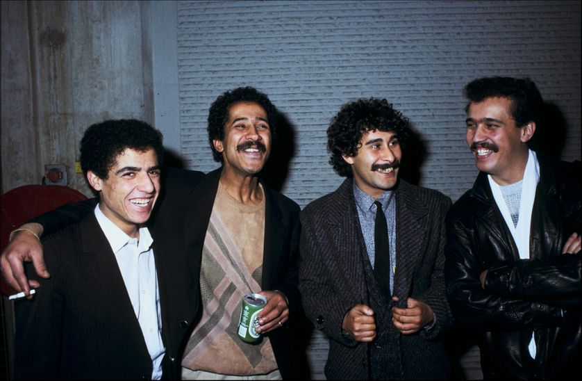 Au festival de raï de Bobigny en janvier 1986, de gauche à droite : Cheb Mami, Cheb Khaled, Cheb Hamid et Cheb Sahraoui• Crédits : Mohamed Lounes/Gamma-Rapho - GettyProgrammation musicale et archives