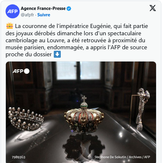 Ils ont également essayé de dérober la couronne de l'impératrice Eugénie mais elle a été retrouvée.